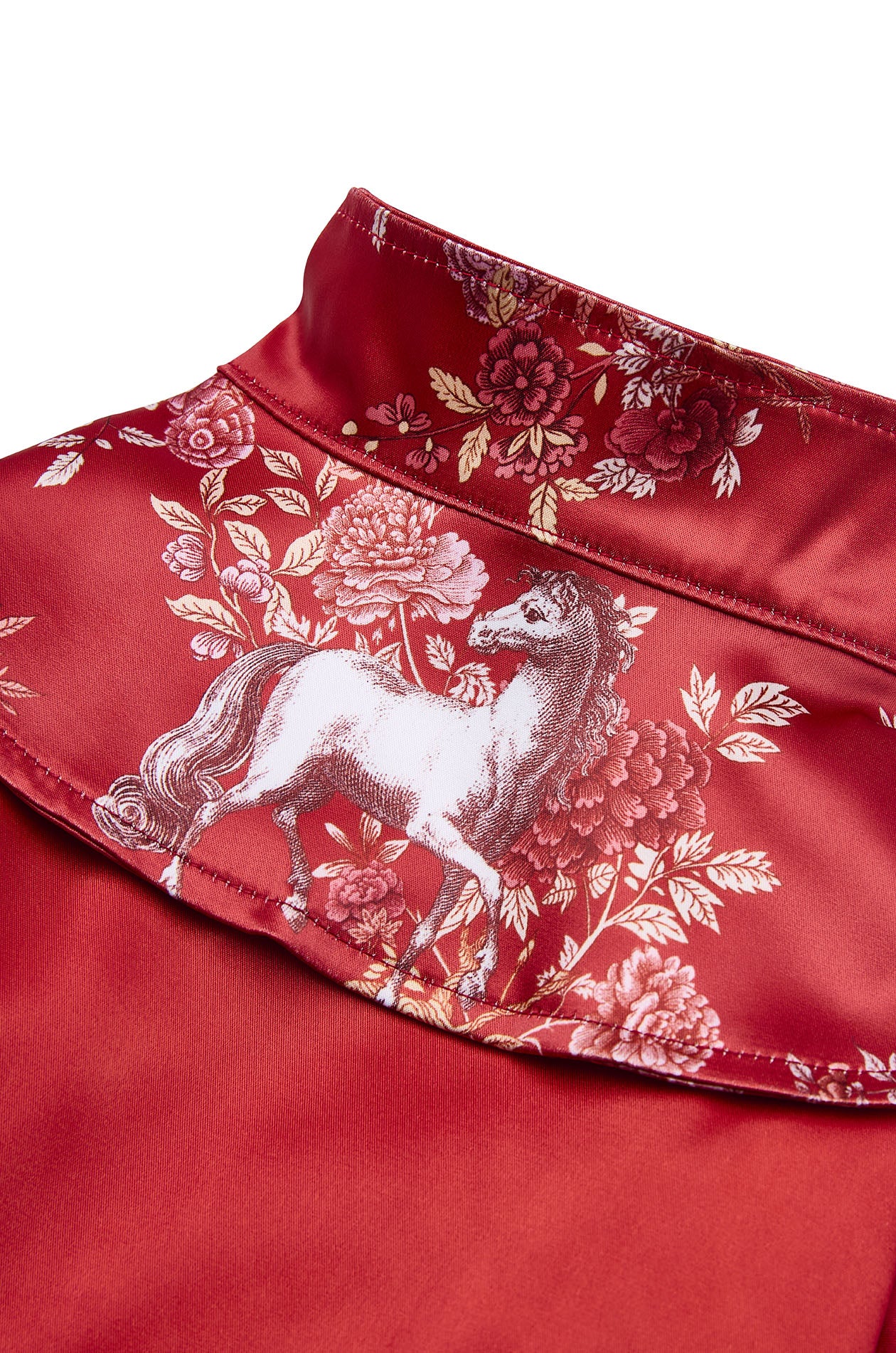 Jaspal x nussdaydream for Lunar New Year | Pet cloth in satin featuring Auspicious motif print, mandarin collar, and pankou knot button detail. Available in Chinese Red.
