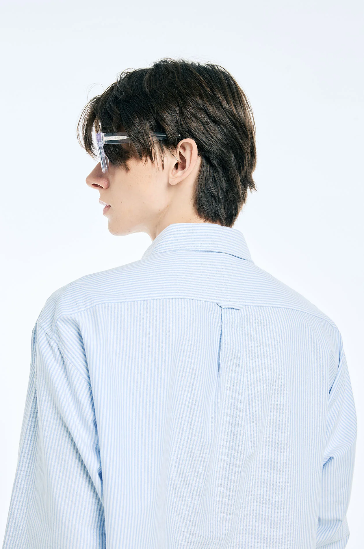 Long-sleeved shirt in oxford with stripes. Relaxed fit with button-down collar and Jaspal logo embroidery at the chest. Front button closure. Available in blue.